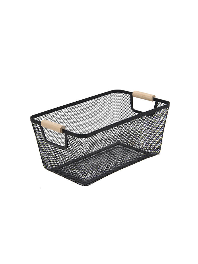 Cesto Canasta Metalica con Asas de Bambu 35x22x16 cmCOLORES: BLANCO, GRIS, NEGRO