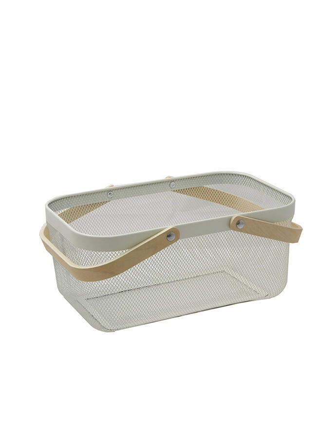 Cesto Canasta Metalica con Asas de Bambu 40x24x18 cm
