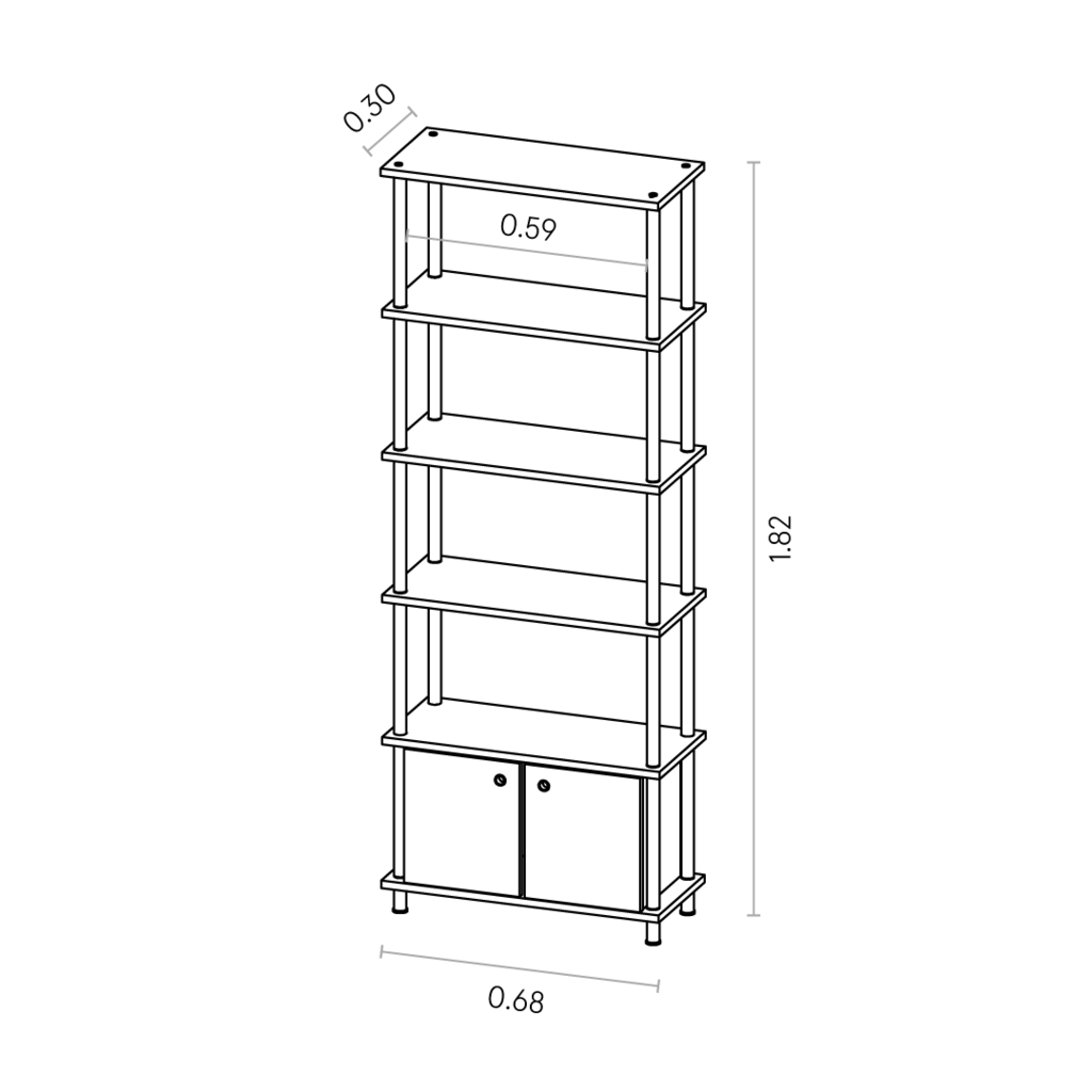 Biblioteca Industrial con Módulo Inferior 68x30x182 cm