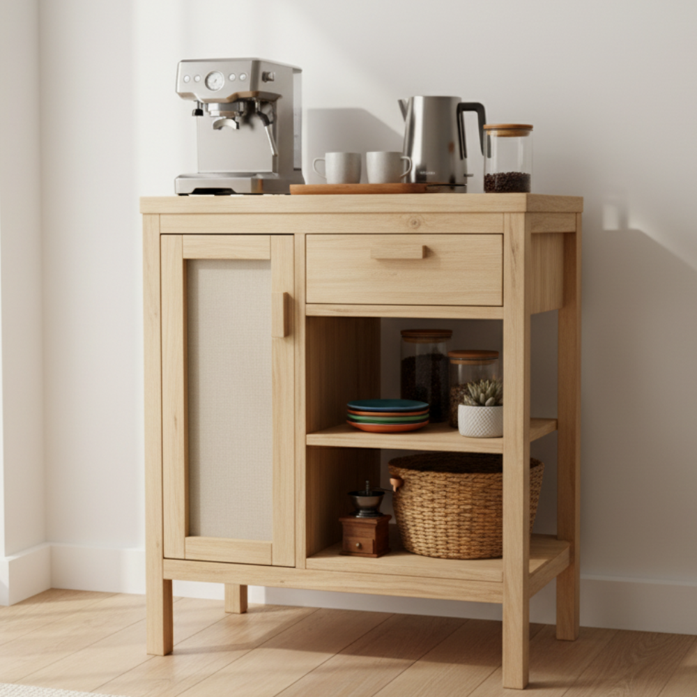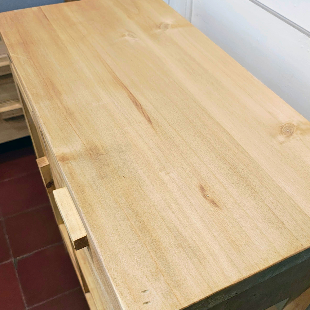 Fabricada en **álamo macizo teñido color petiribí**, con **terminación hidrolaqueada**.