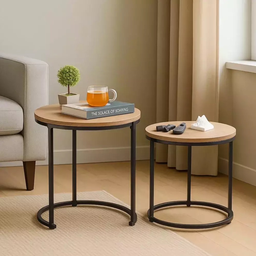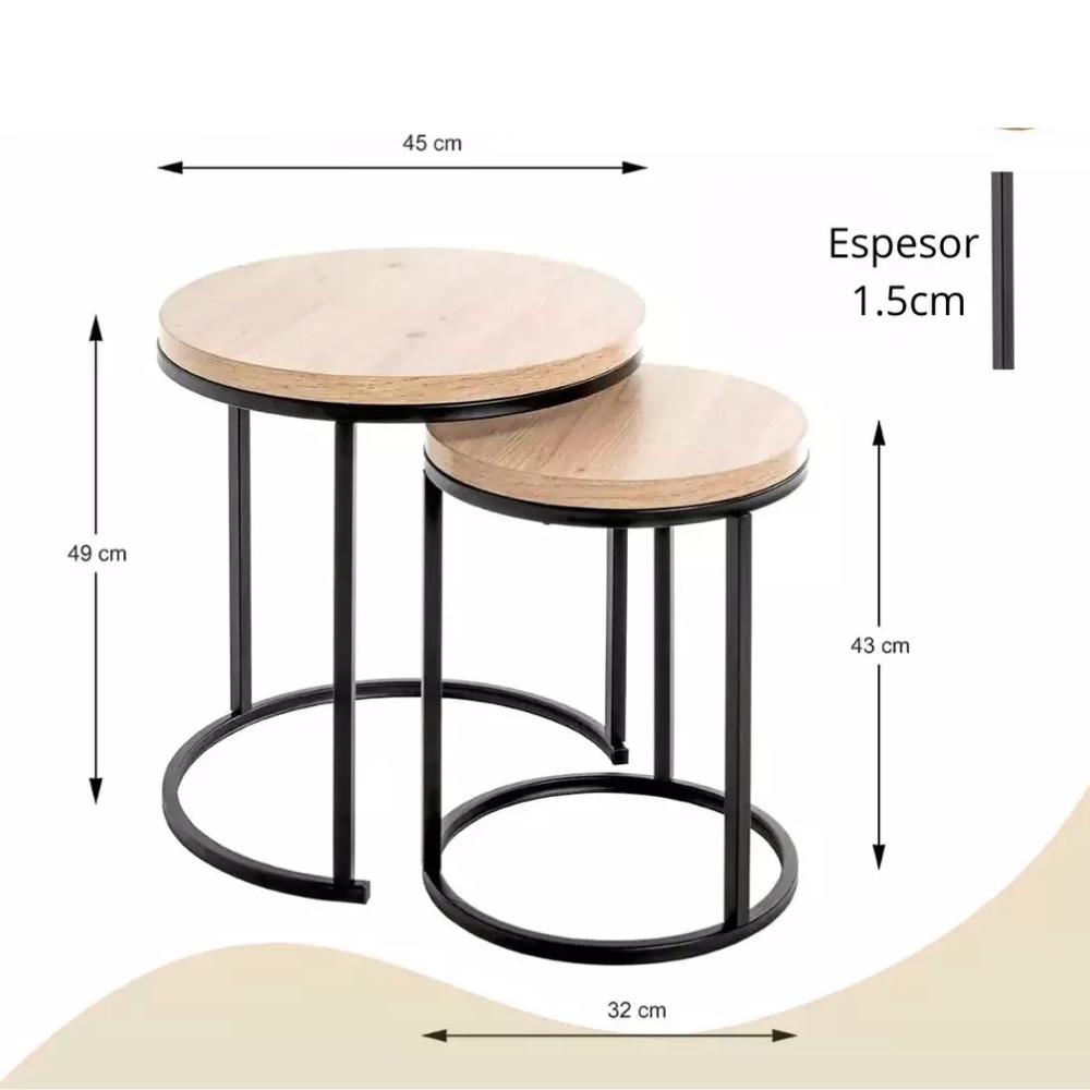 Optimice su espacio con nuestro elegante set de mesas auxiliares tipo nido, diseñado para ofrecer funcionalidad y un toque estético moderno. Este conjunto se compone de dos mesas de diferentes dimensiones, permitiendo una versatilidad de uso como mesas de centro, mesas laterales o elementos decorativos.
