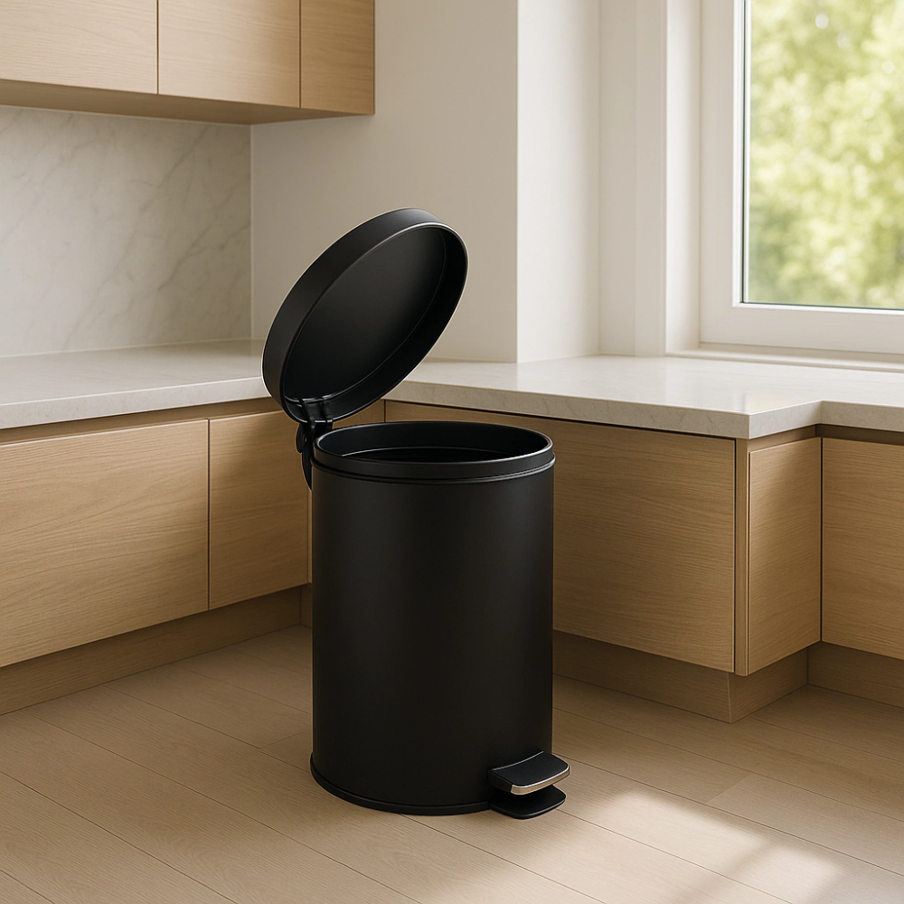Apertura con pedal: Mecanismo robusto y suave que permite abrir la tapa fácilmente con el pie, manteniendo tus manos libres y limpias.