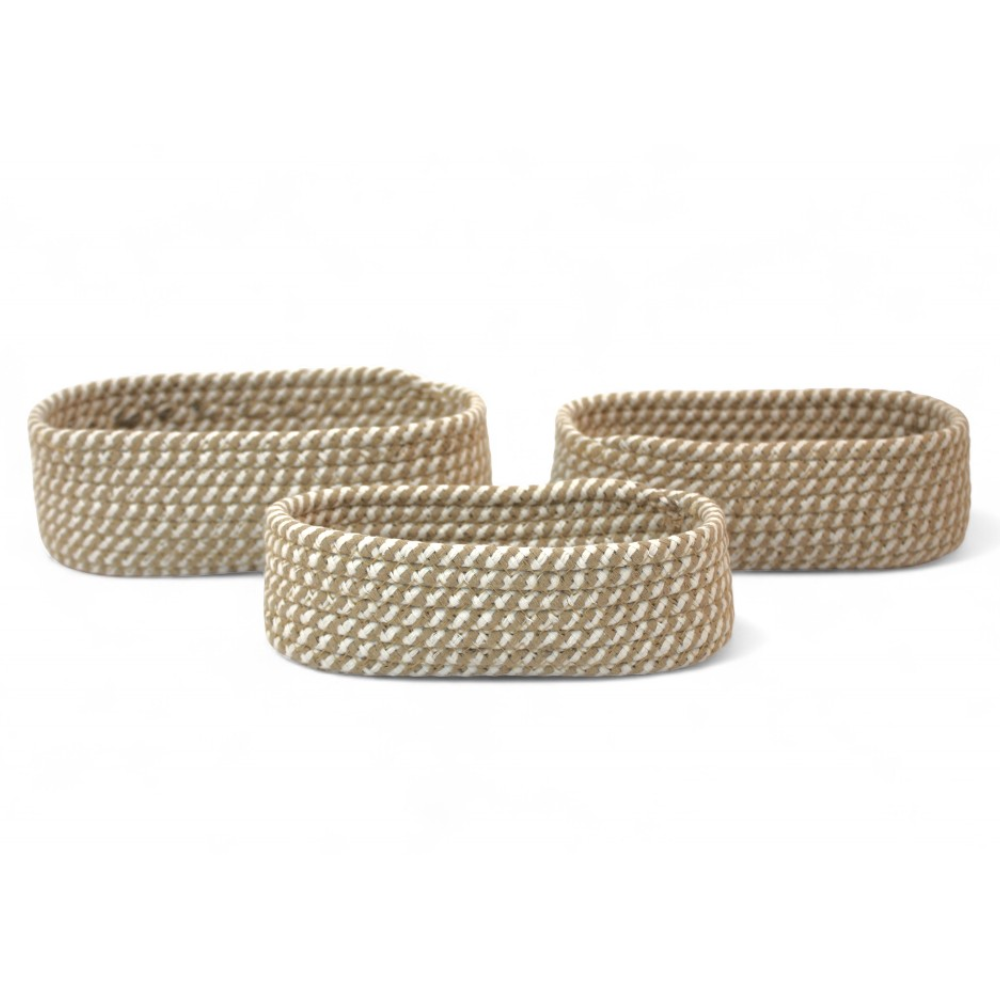 Set x3 Canastos Cestos de Soga Ovalados de Yute y Algodón Blanco Organizadores Decorativos