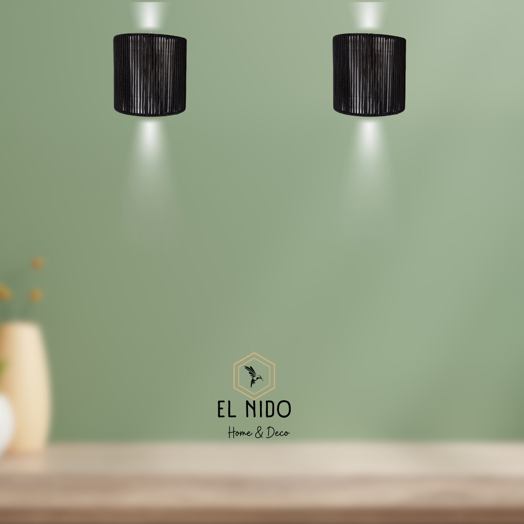 • **APLIQUE DE PARED 20X20CM TEJIDA CON CORDON DE POLIPROPILENO DE ALTA RESISTENIAESTRUCTURA METALICA INCLUYE KIT ELECTRICOCOLORES**: NEGRO O SIMIL YUTE