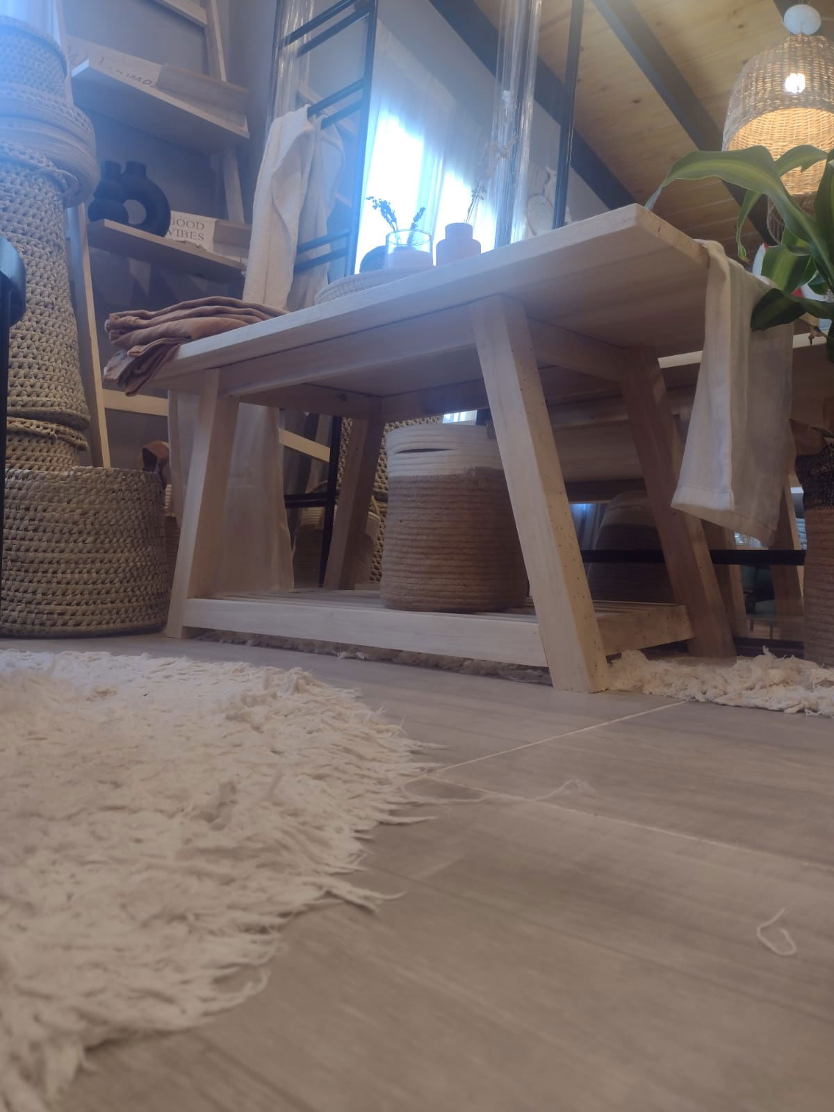 • Mesa Ratona de ALAMO MACIZO con REVISTERO De 100x50x45CM La mesa se entrega en color crudo.