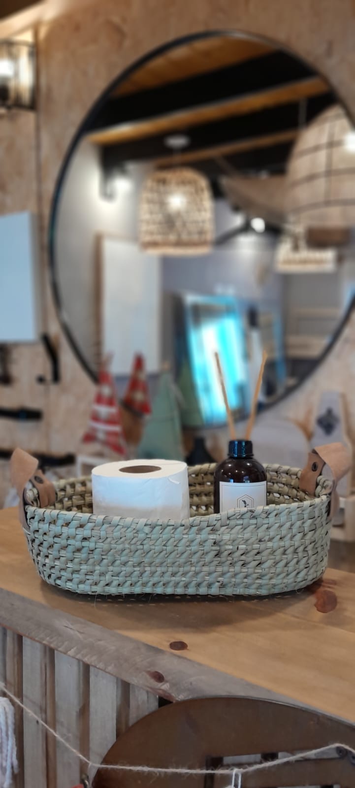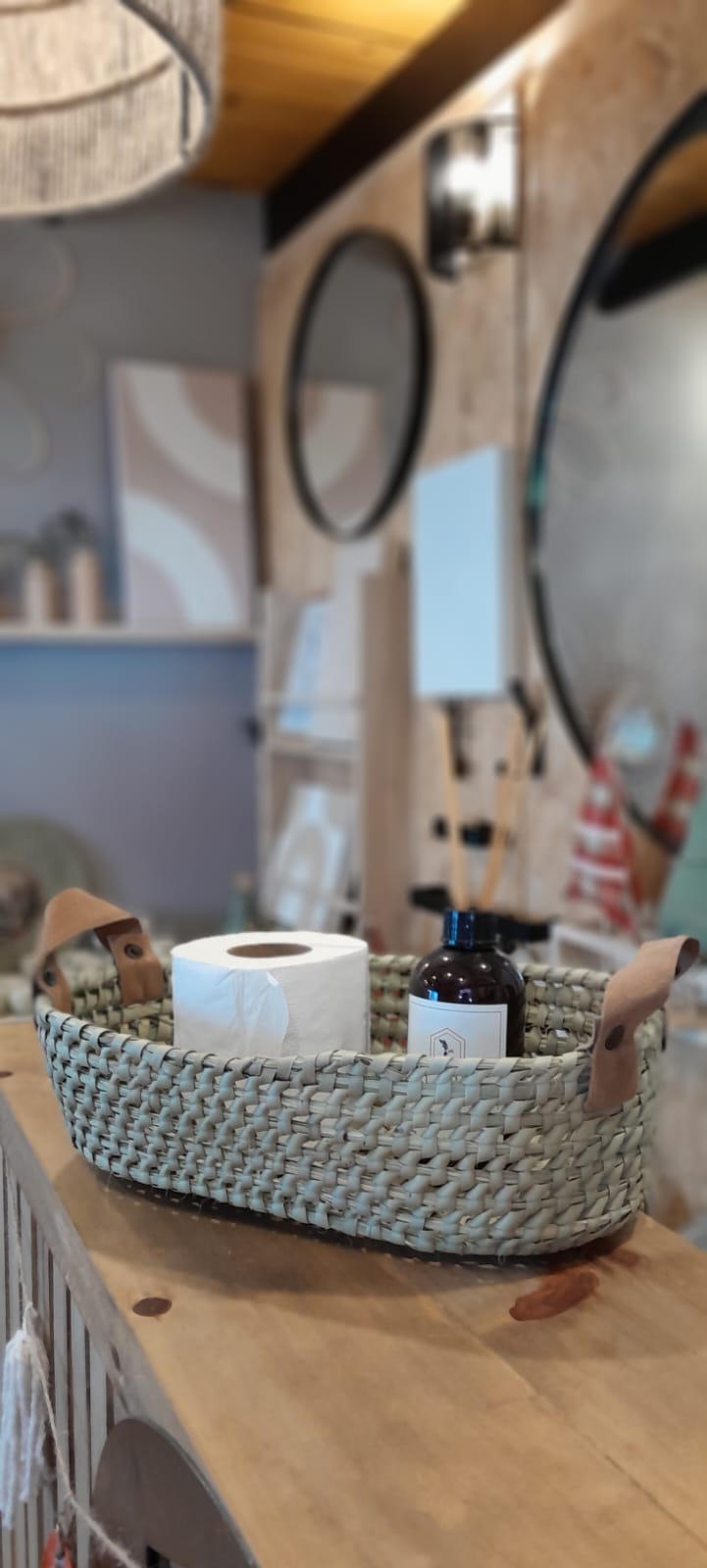 ✨ BANDEJA PORTA OBJETOS OVALADA DE PALMA CON ASAS DE CUERO ✨
