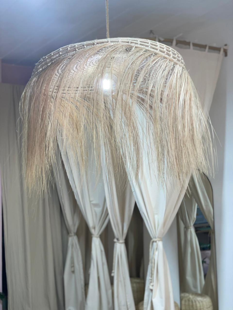 ✨ PANTALLA LAMPARA DE PALMA 75X10CM CON FLECOS ✨
