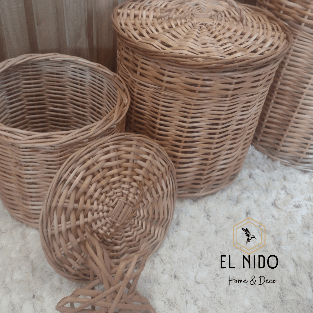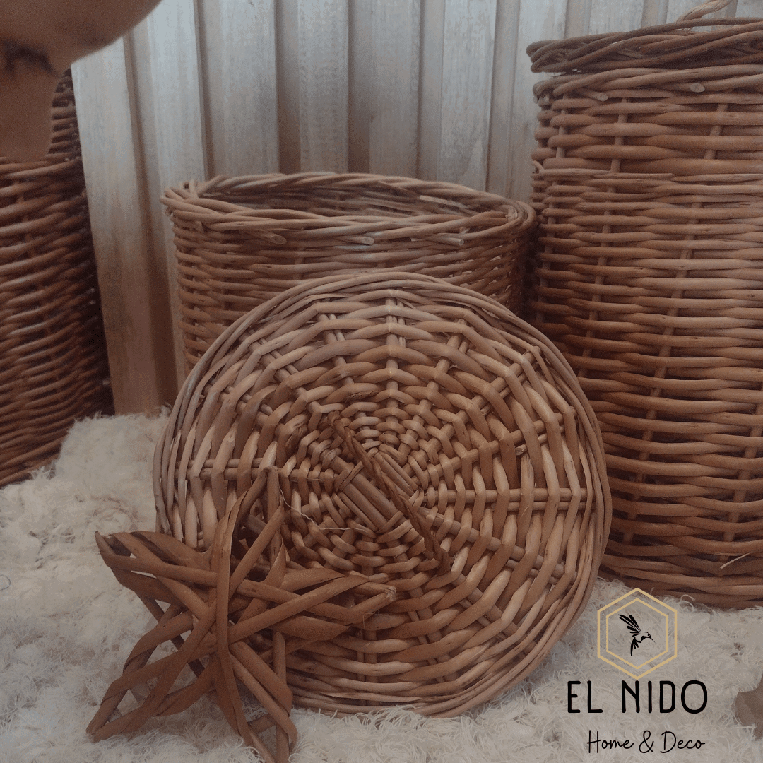 • **CESTO DE MIMBRE CON TAPA DE GUARDADO. MEDIDAS**: 30X30CM