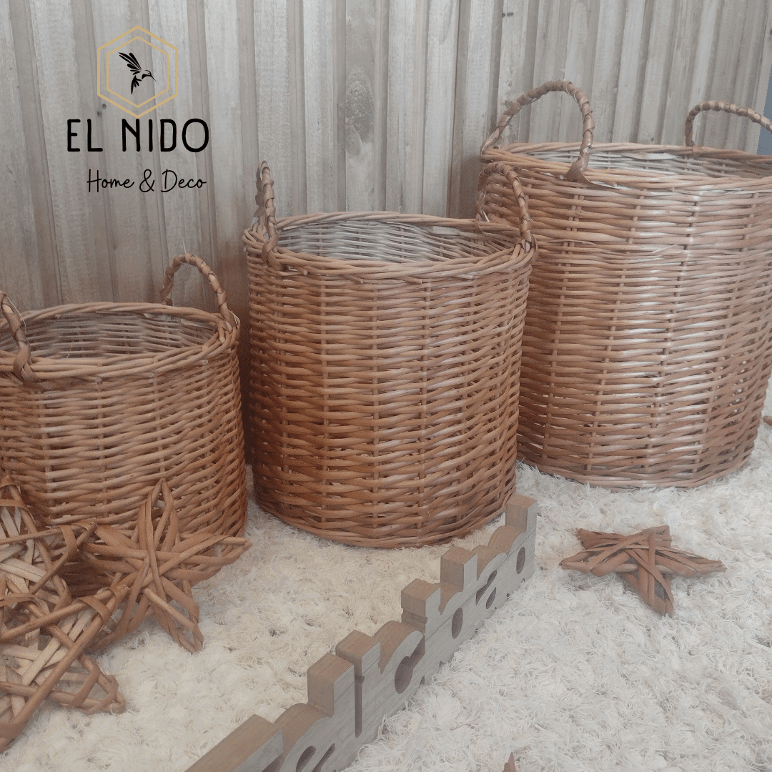 • **CESTO DE MIMBRE CON MANIJAS MEDIDAS**: 30X30CM