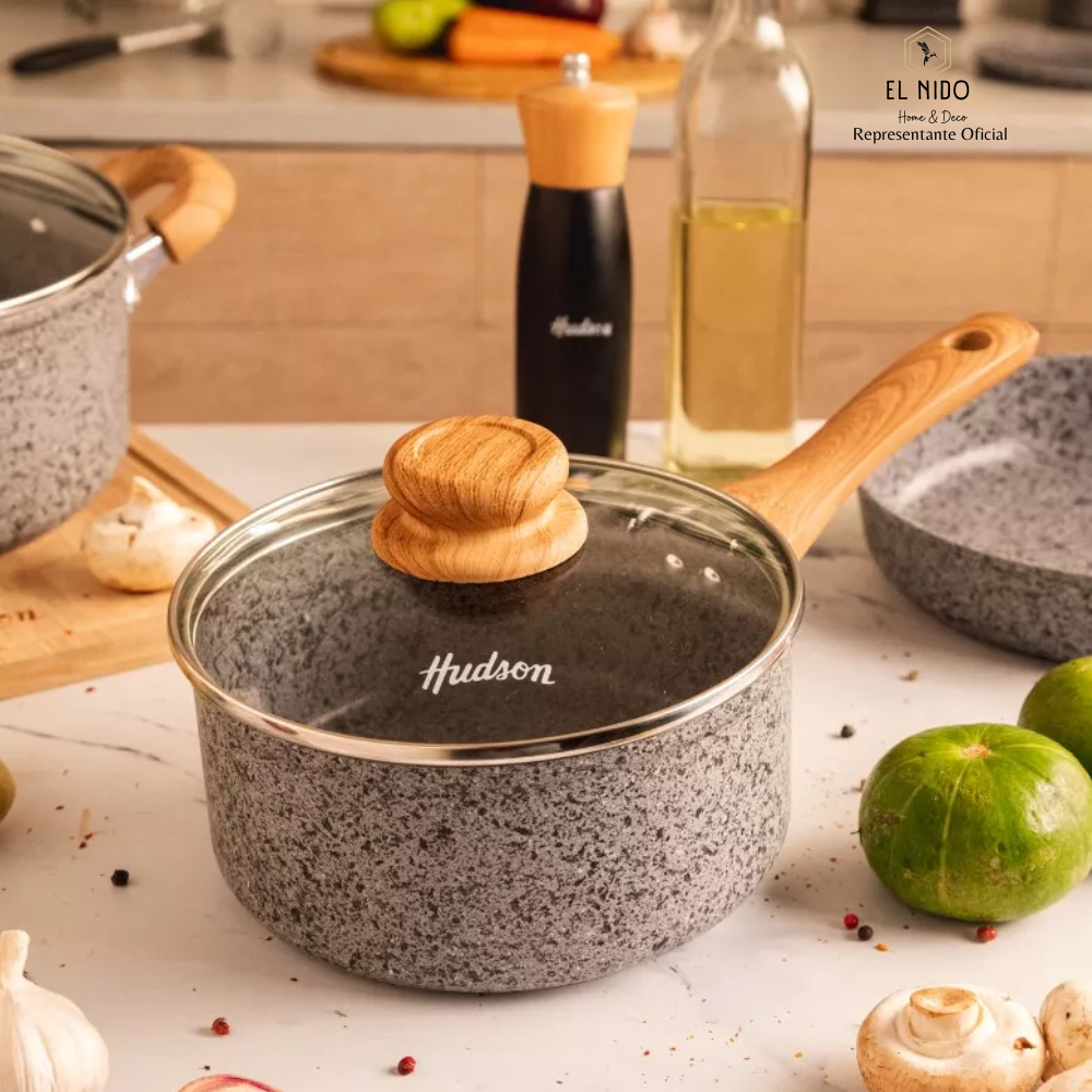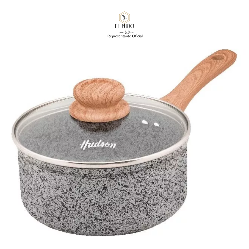 • ✨ CACEROLA DE ALUMINIO FORJADO 20 CM ANTIADHERENTE GRANITO Y TAPA DE CRISTAL HUDSON ✨