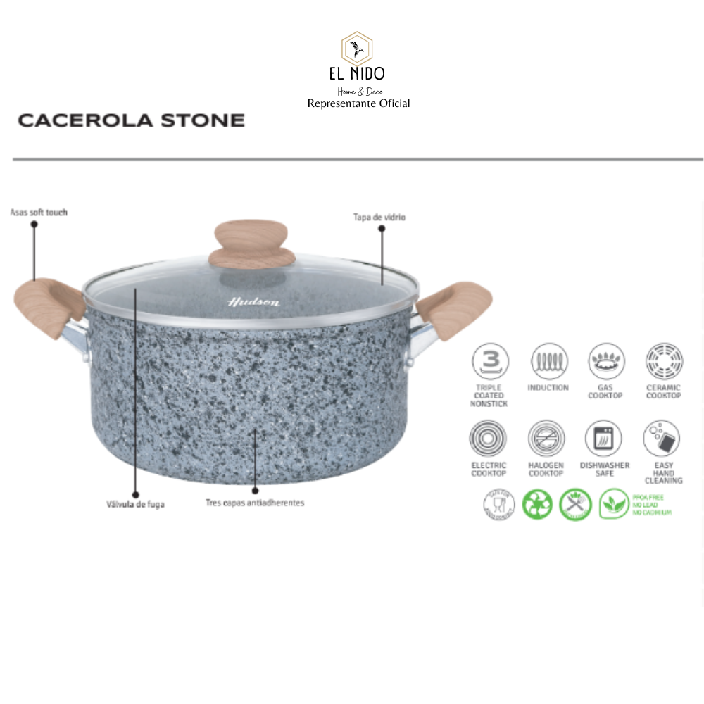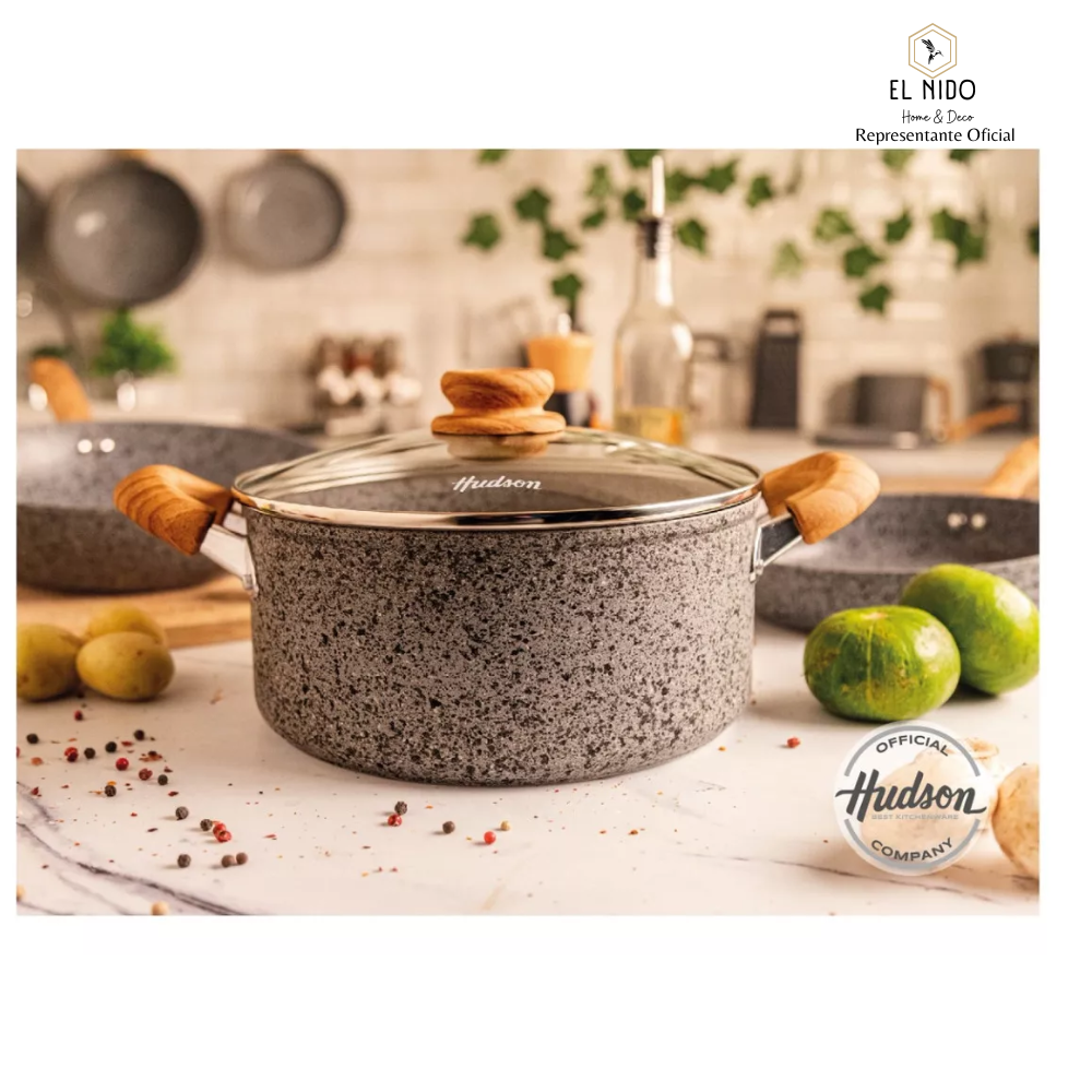 ✨ CACEROLA DE ALUMINIO FORJADO 24 CM ANTIADHERENTE GRANITO Y TAPA DE CRISTAL HUDSON ✨