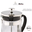 ::: ESPECIFICACIONES :::- Cafetera de vidrio con base.- Tapa y embolo de acero inoxidable.- Sistema con embolo tipo prensa francesa.- Capacidad 600 ml.- Fácil de limpiar.- Dos vasos térmicos.