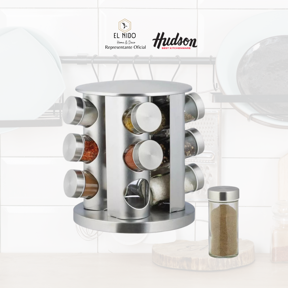✨ ESPECIERO GIRATORIO DE ACERO INOXIDABLE DE 12 JARROS HUDSON ✨