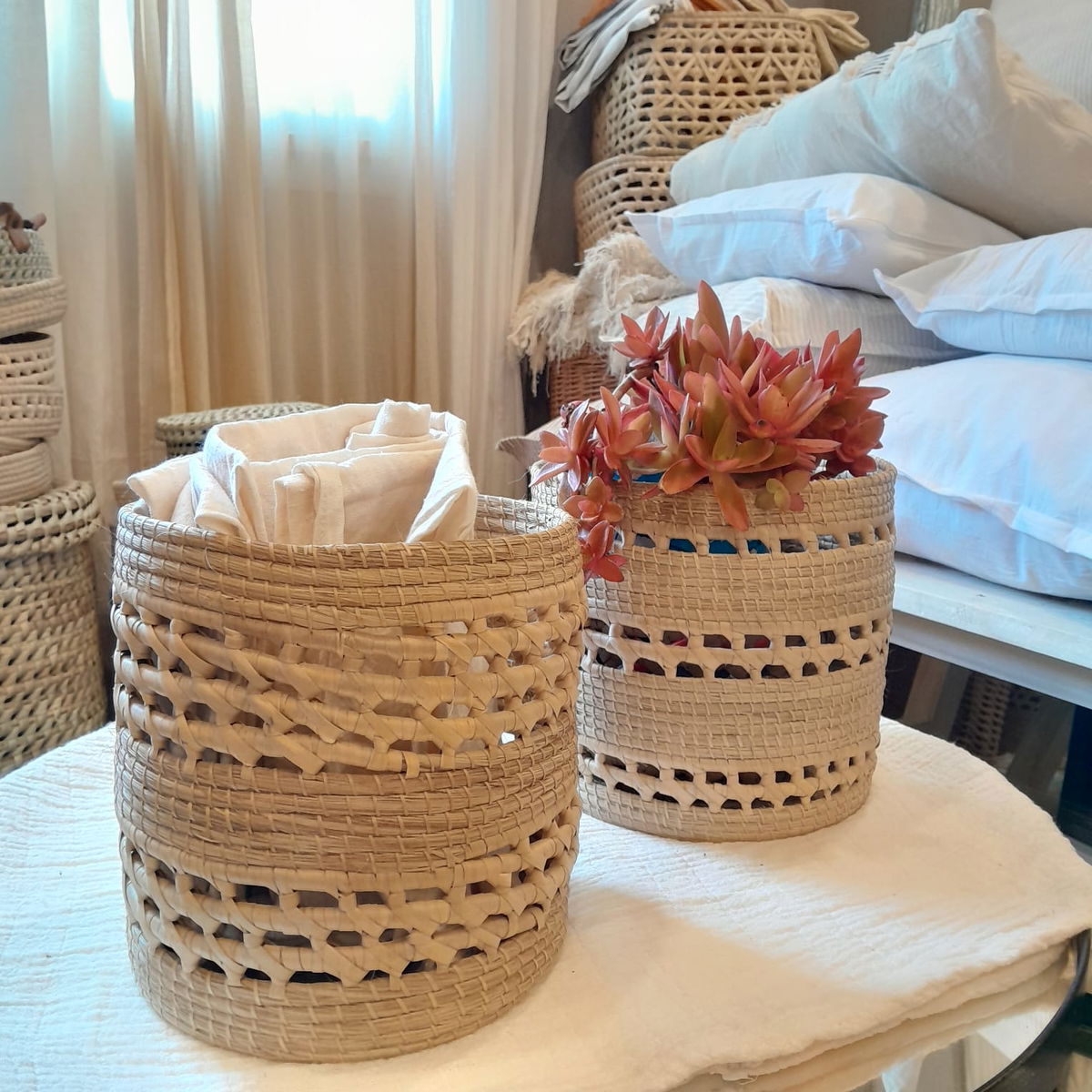 ✨ CESTO CANASTO DE PALMA Y CARANDILLO 20X22CM ✨