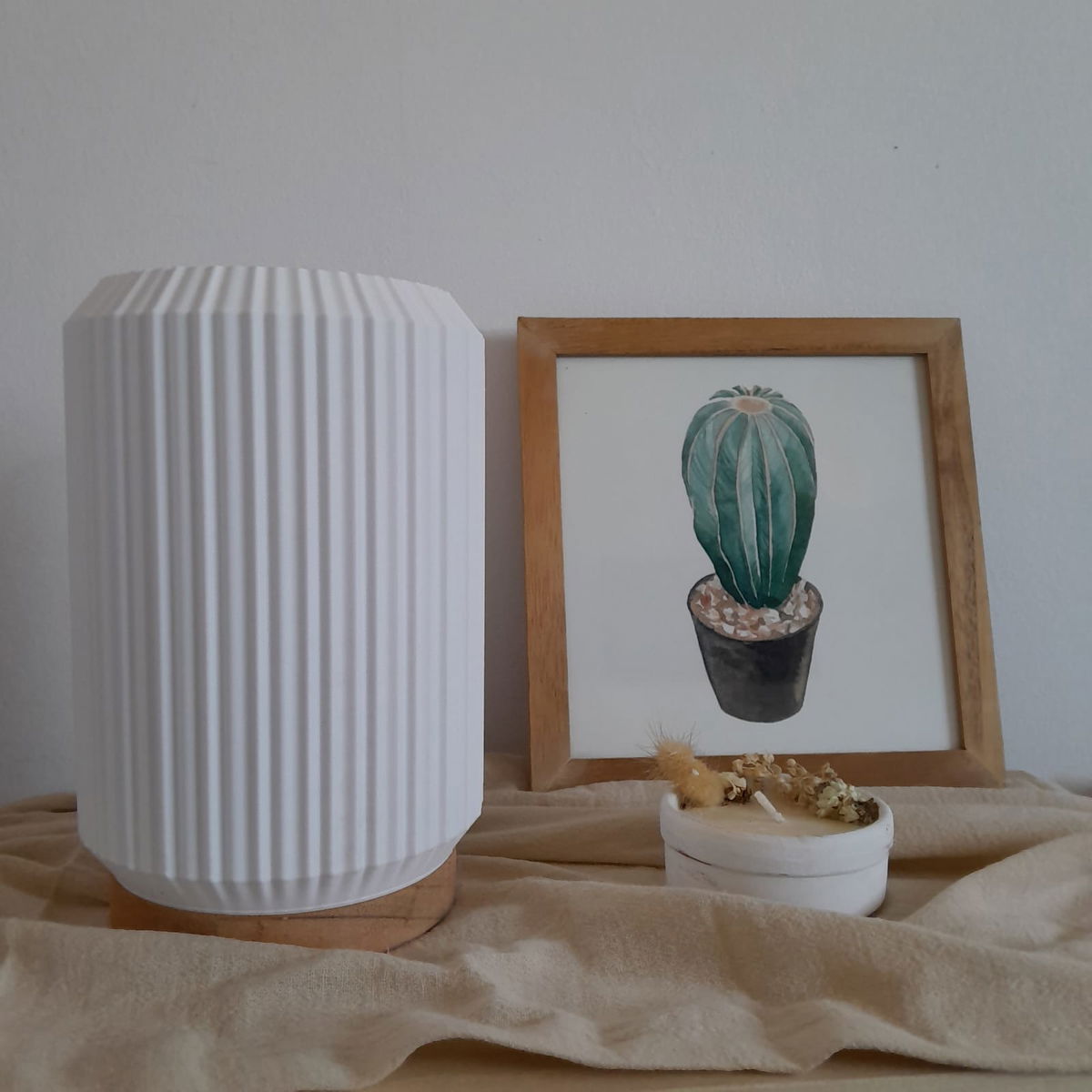 • **Base Material**: Madera **_Medida_**: 12cm de diámetro x 2cm de alto Globo: Material: PLA IMPRESION 3D **_Medida_**: 15cm Diámetro Altura total: 22cm Cable: Tipo Velador Blanco Tipo de Lampara: Bulbo E27 NO INCLUYE FOCO