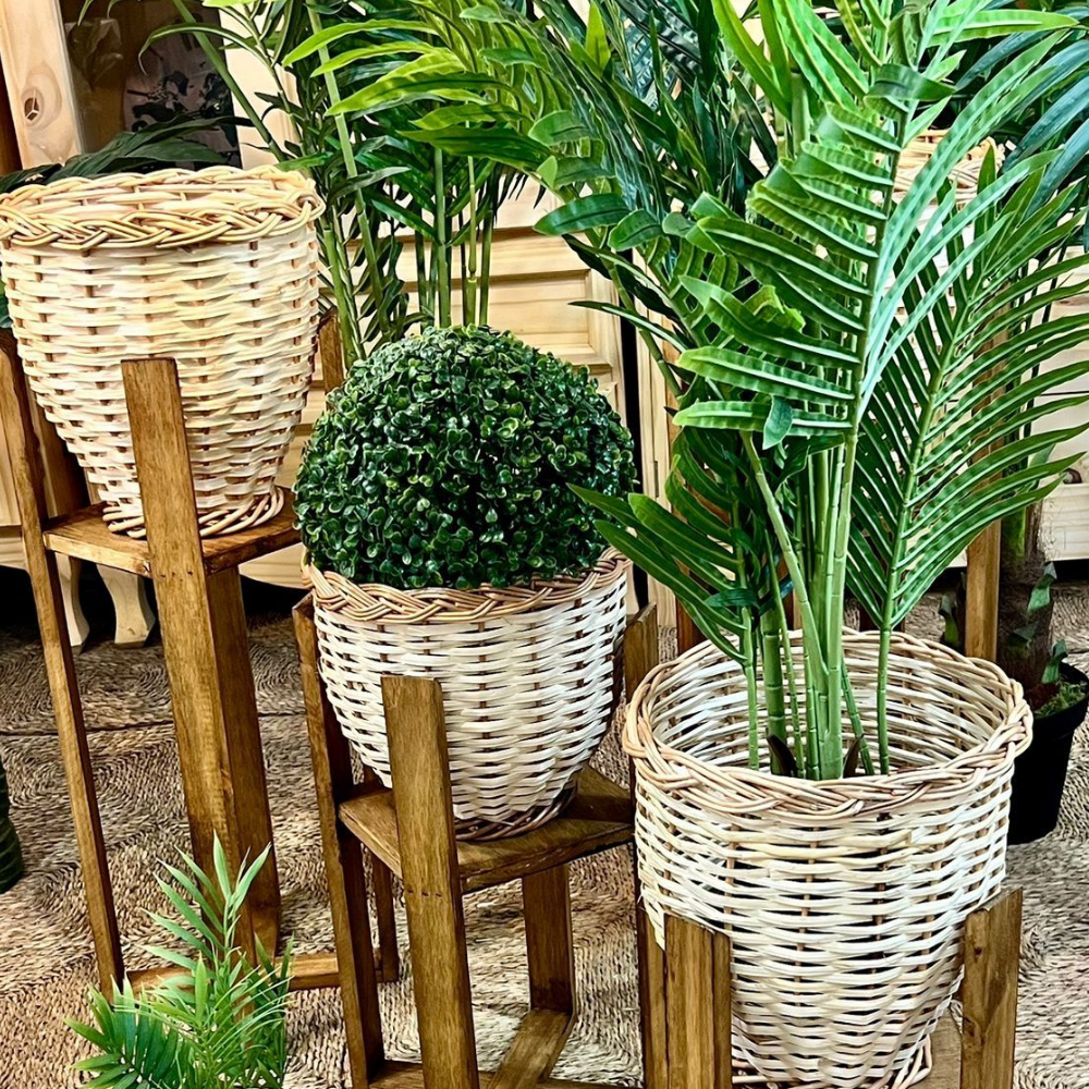 • **MACETERO DE MIMBRE BOMBE**_Medida_** aproximada**: 28 cm x 30 cm de alto. Base: 17 cm