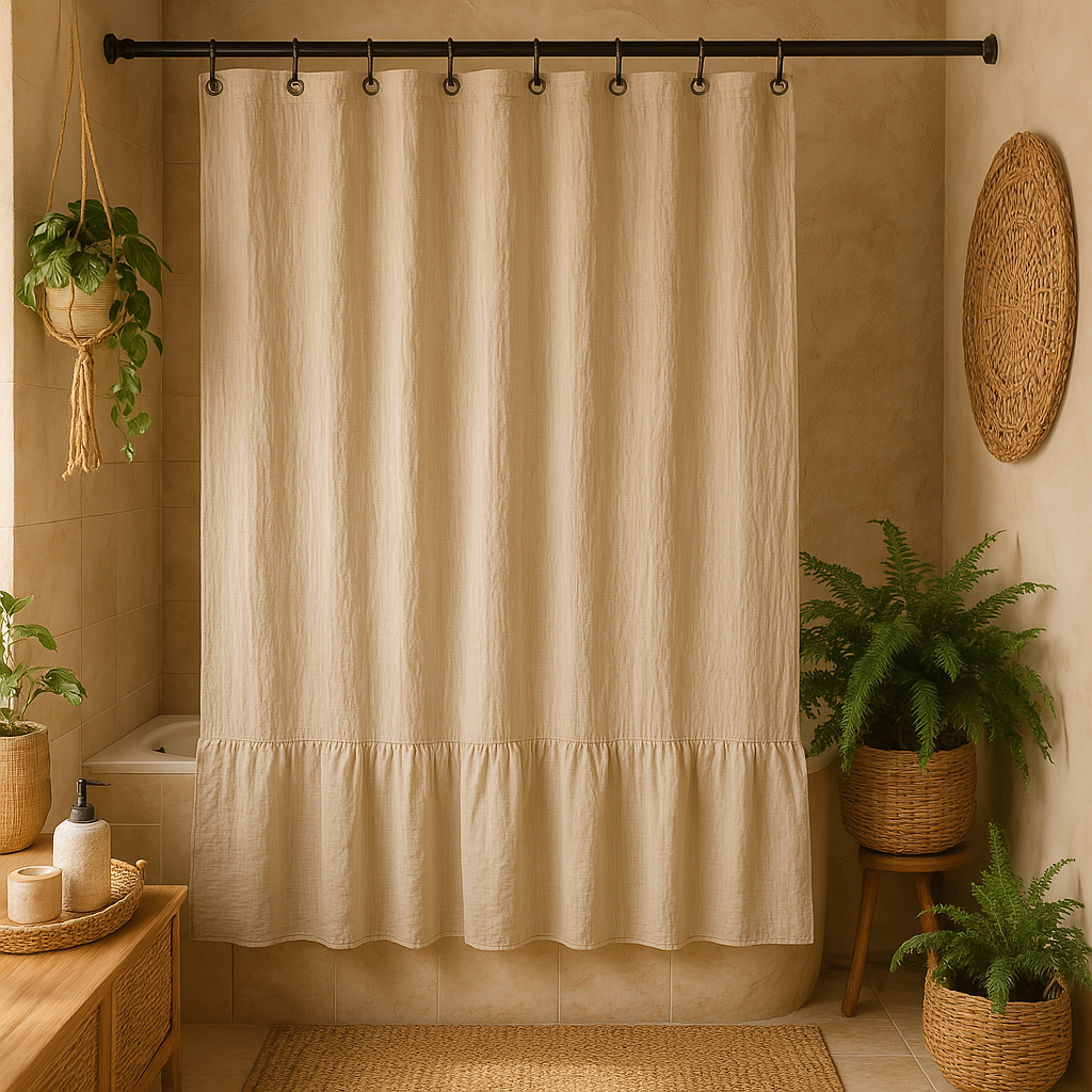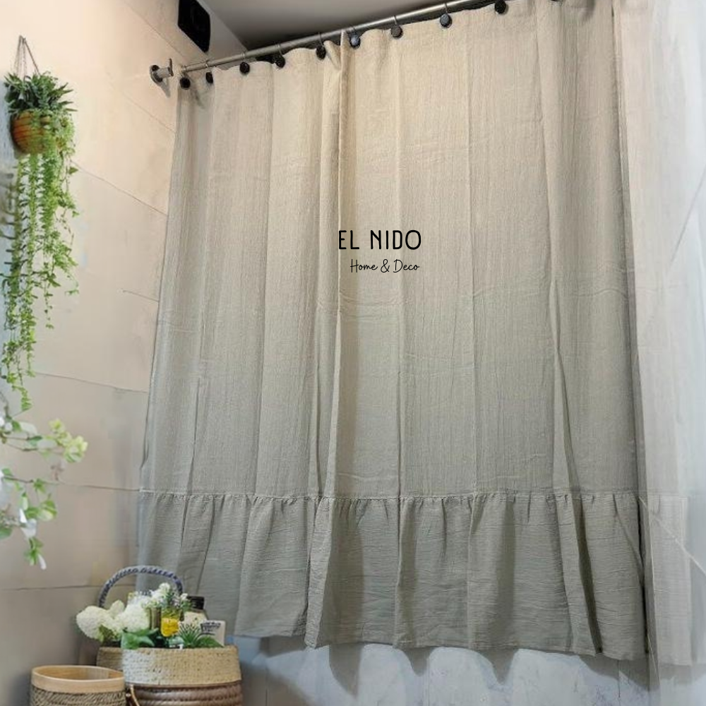 ✨ CORTINA DE BAÑO CON OJALES GASA CON VOLADOS 180X180CM ✨