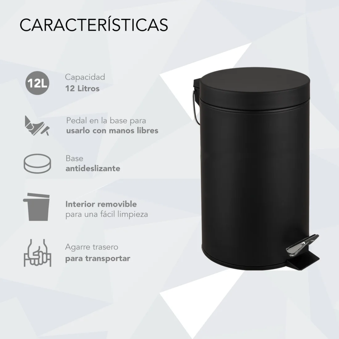 ✨ TACHO CESTO DE BASURA 12LTS. NEGRO ✨