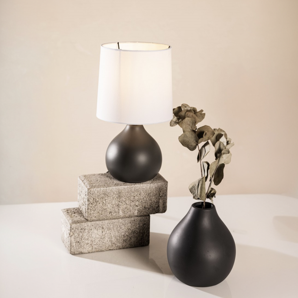 Un diseño minimalista y moderno que aporta calidez a cualquier rincón ☁️🖤. Su base de terracota en acabado mate contrasta a la perfección con su pantalla gris, logrando un equilibrio ideal entre lo rústico y lo contemporáneo.