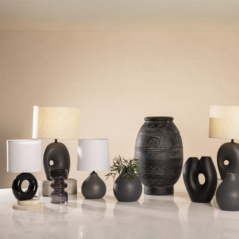 Sofisticación y diseño en una sola pieza 🖤✨. Este velador de cerámica negra en forma de dona es un must-have para quienes buscan una iluminación elegante con un toque artístico.