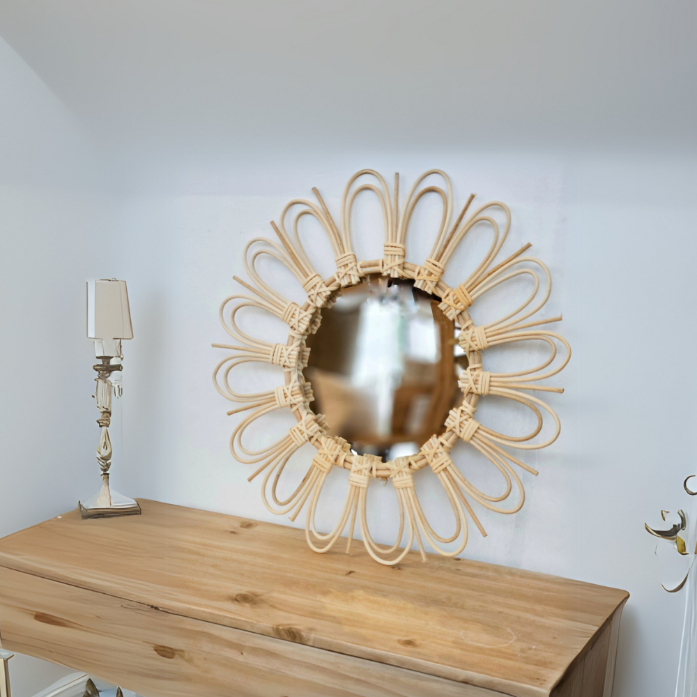 Un reflejo de la naturaleza en tu hogar 🌿✨. Este espejo de ratán es ideal para sumar calidez y un estilo boho a cualquier espacio.