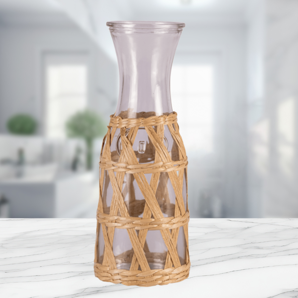 ✨ BOTELLA JARRON FLORERO VIDRIO CON FIBRAS NATURALES ✨