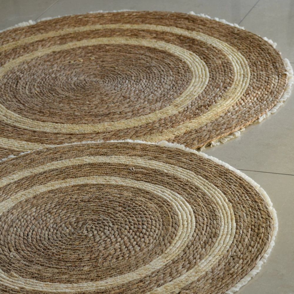 ✨ ALFOMBRA REDONDA DE YUTE 100CM CON FLECOS ✨