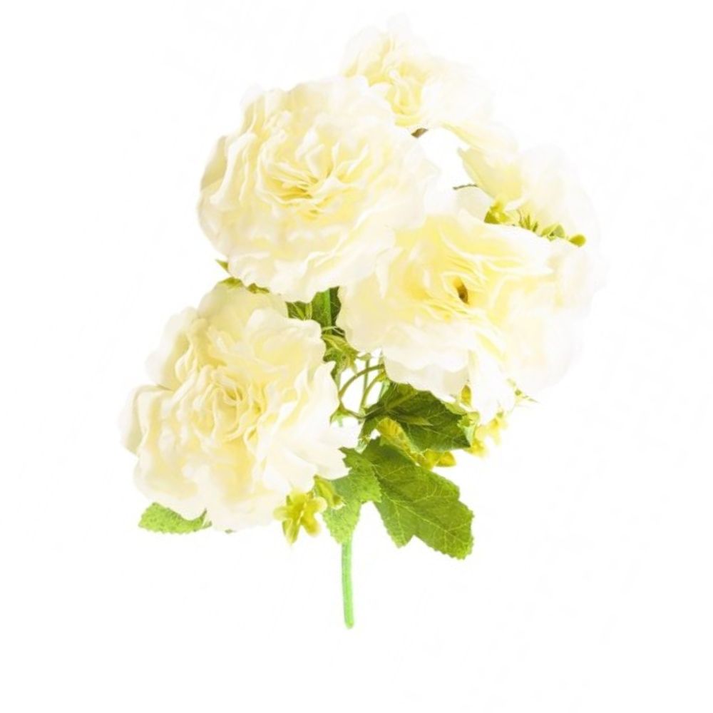 • Bouquet de rosas artificiales color manteca con hojas verdes – 30 cm