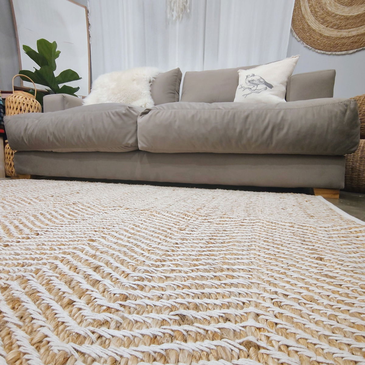 🌾 Material: Yute trenzado + algodón blanco
