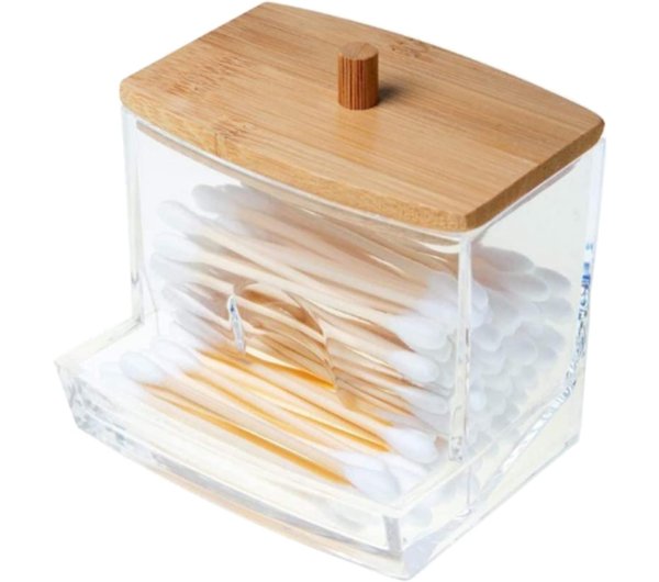 PORTA HISOPOS ACRILICO Y BAMBU