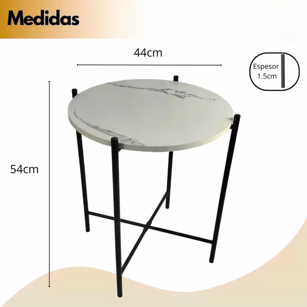Mesa Ratona Auxiliar Hierro Simil Marmol Redonda Arrime