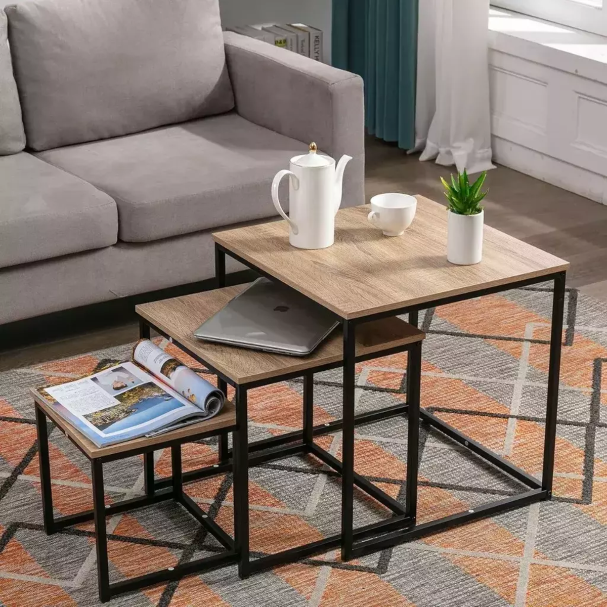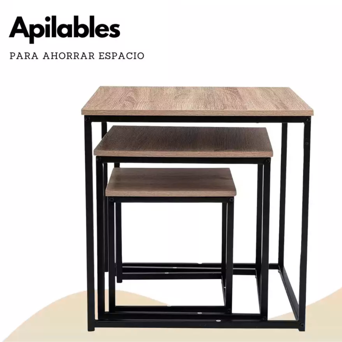 Utilizalas juntas para crear una superficie de apoyo amplia y escalonada, o separalas y distribuilas por diferentes habitaciones según tus necesidades. Perfectas como mesas de centro, mesas auxiliares junto al sofá, mesas de noche o soportes decorativos. Material de la tapa: Madera MDF color roble claro