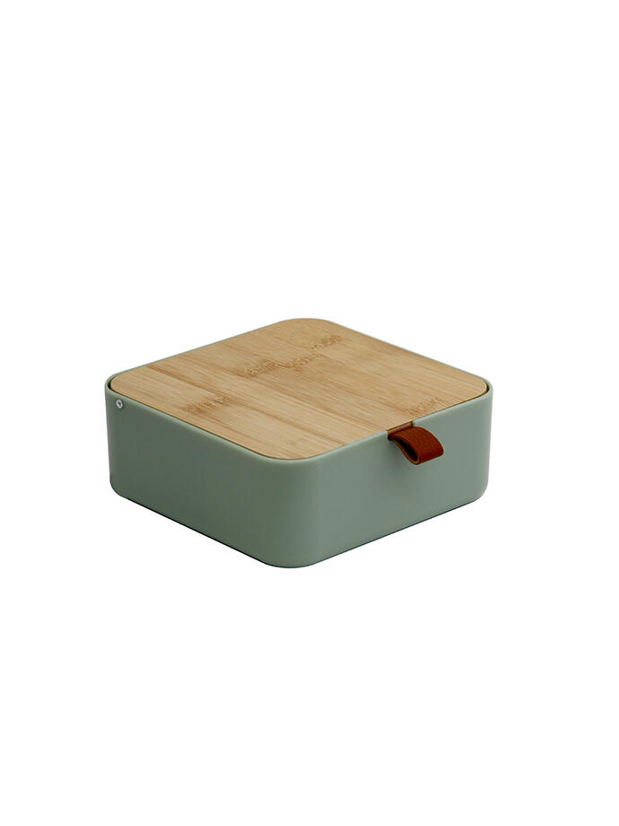 Joyero Verde con Espejo Interior Moderno tapa de Bamboo alhajero