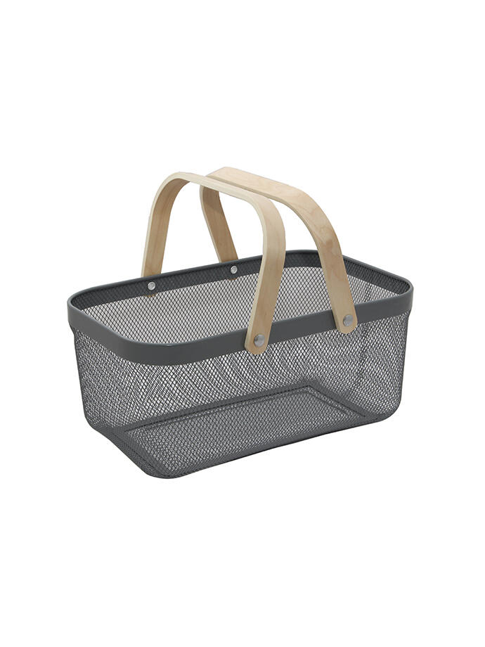 Cesto Canasta Metalica con Asas de Bambu 40x24x18 cm