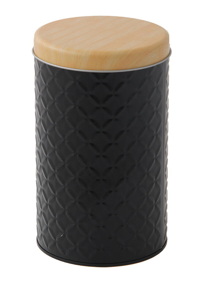 Lata metálica en color Blanco o Negro y Madera 11x11x18 cm Diseño Moderno