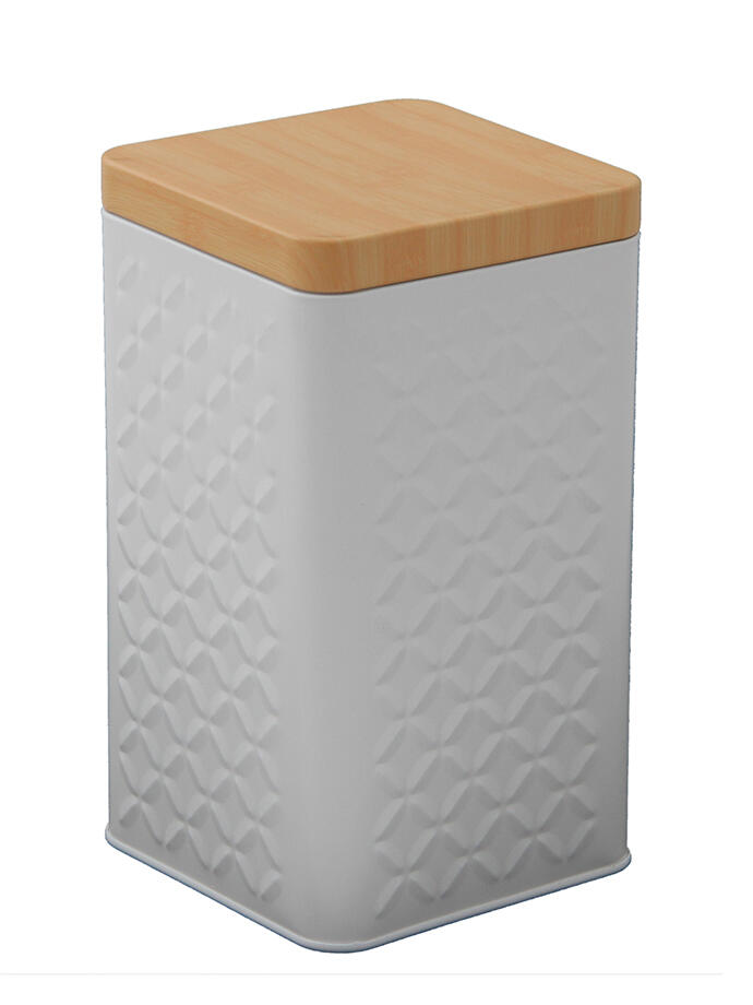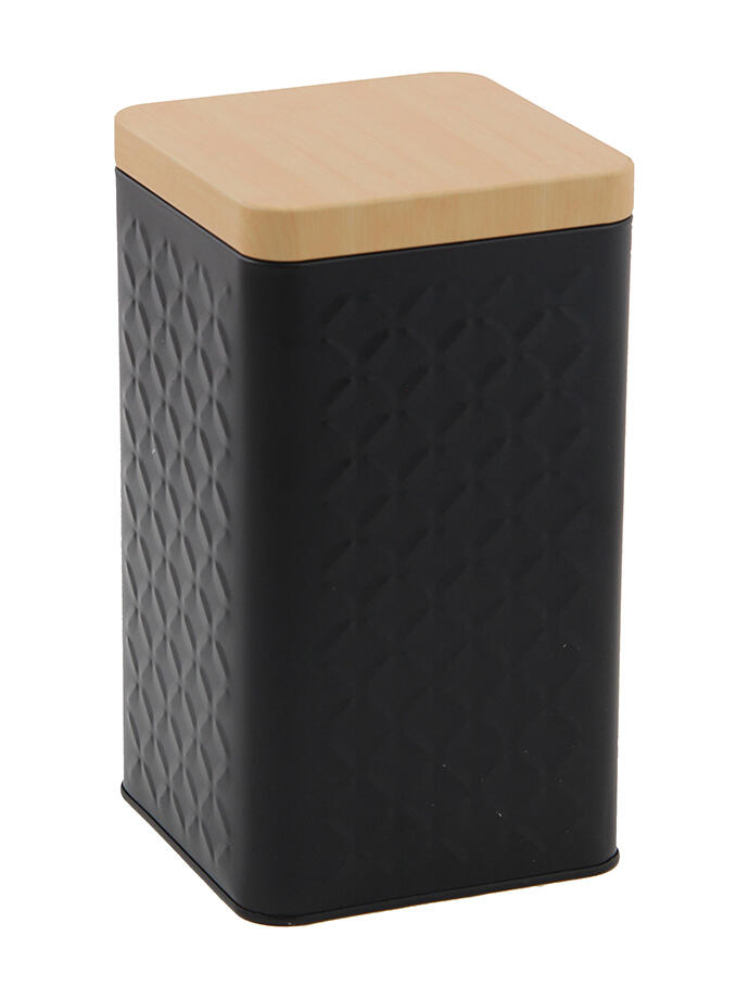 Lata metálica en color Blanco o Negro y Madera 10x10x18 cm