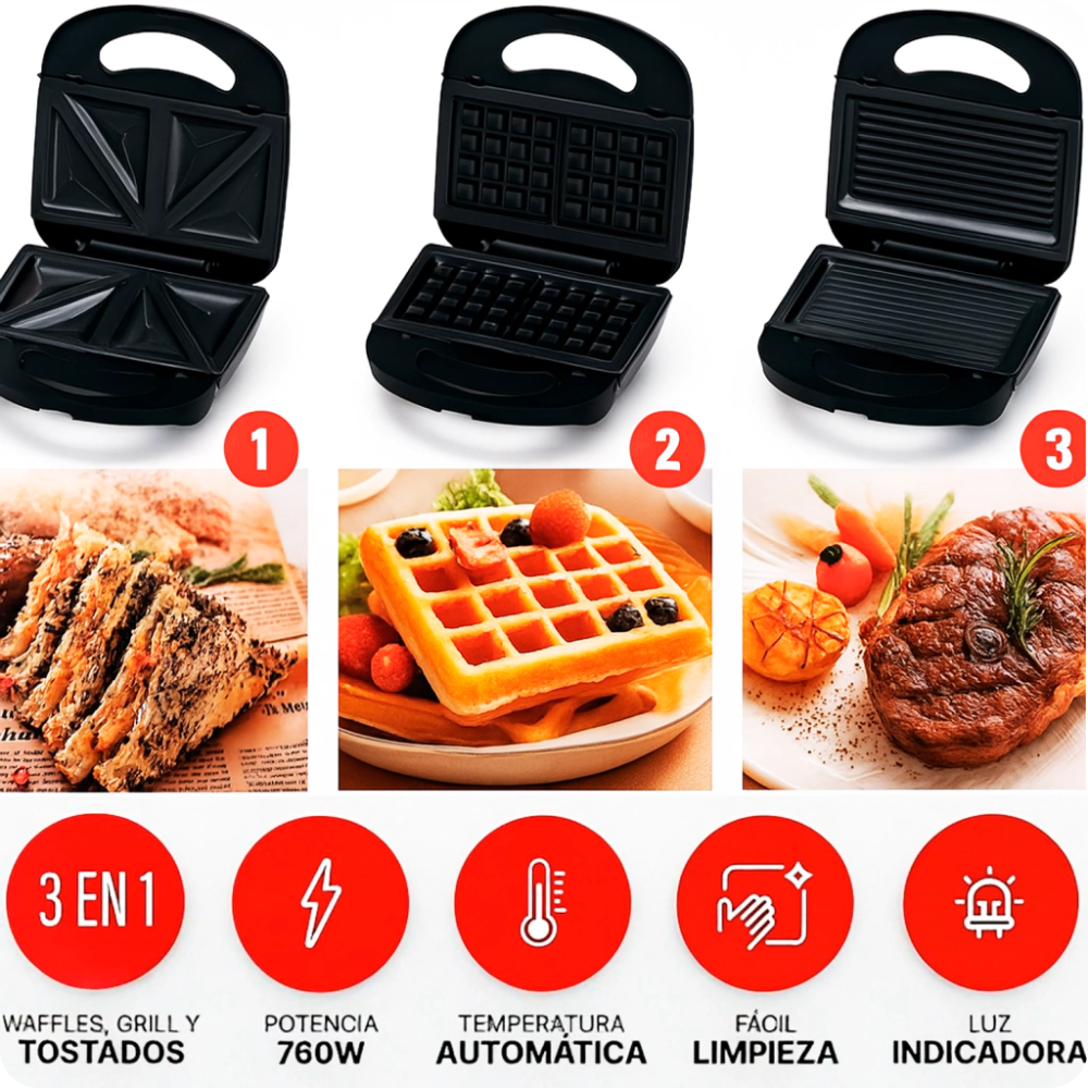 - Tipos de placas: Grill,Sandwich,Waffles