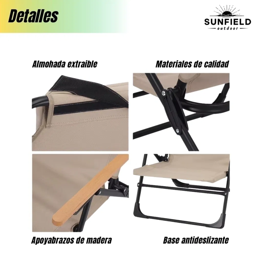 Ideal para camping, playa, jardín o balcón. Su diseño ergonómico, materiales de alta calidad y fácil plegado la convierten en la compañera perfecta para tus momentos de descanso.