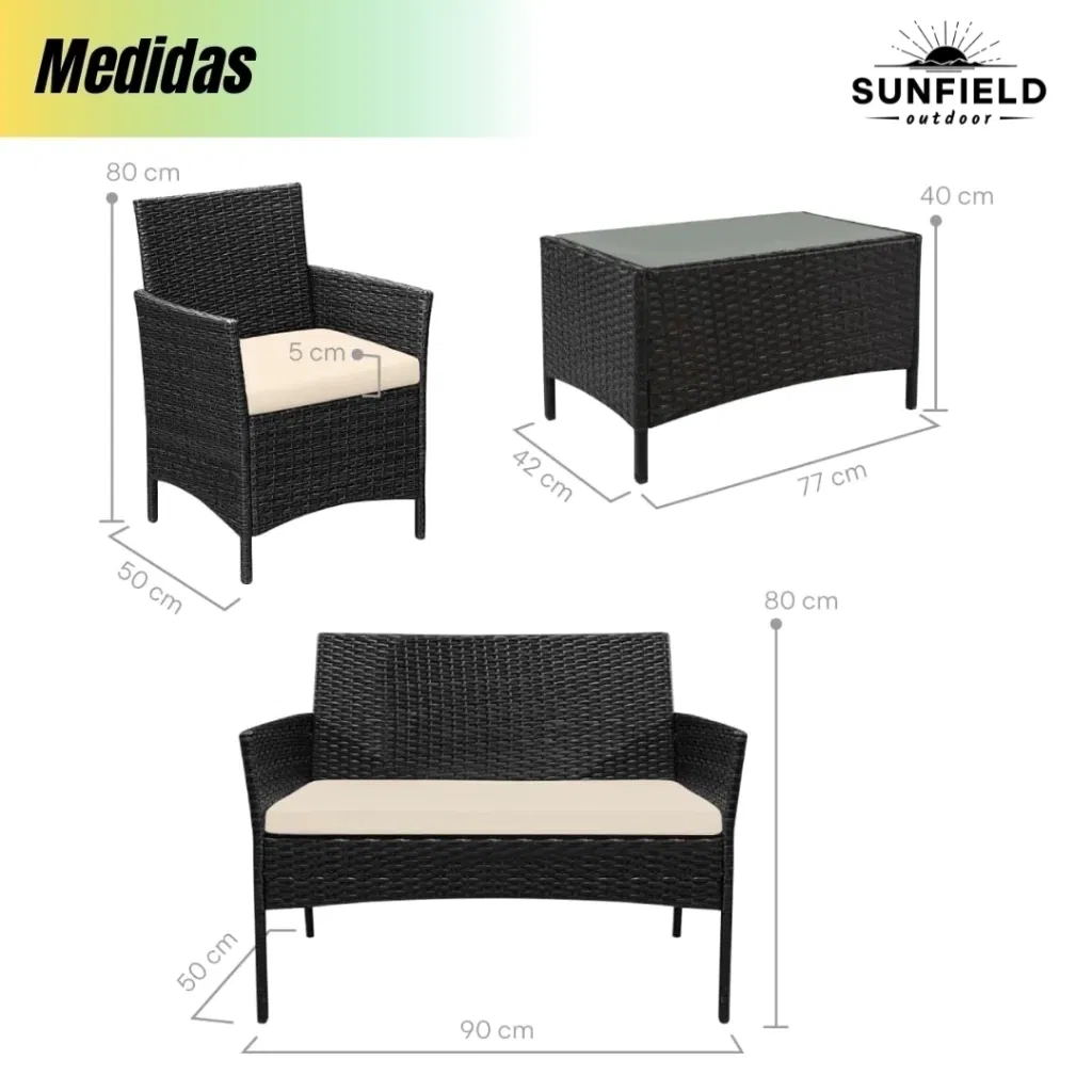 Set 3 Sillones + Mesa Rectangular Sunfield