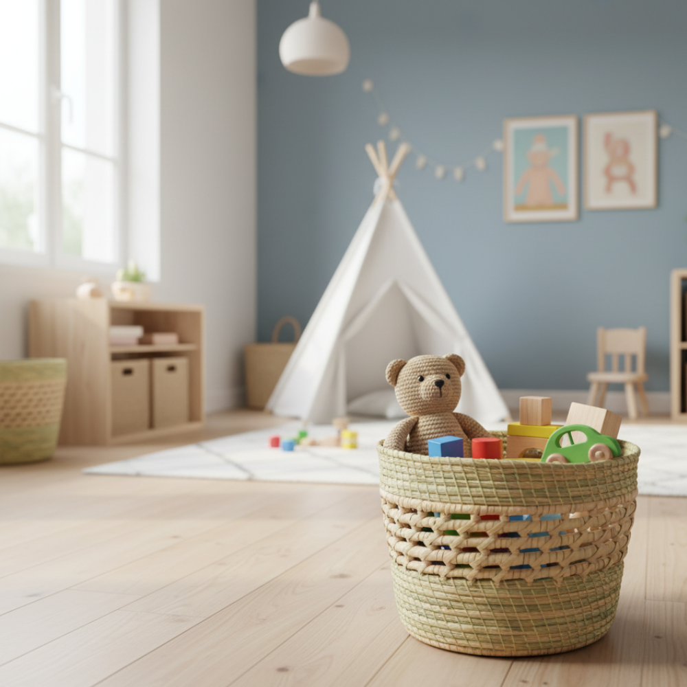 🌿 Cesto de palma y carandillo hecho a mano, ideal para organizar con estilo. ✨ Su textura natural y diseño artesanal lo convierten en un complemento decorativo único. 🏡 Perfecto para mantas, juguetes o plantas. 💛 Cada pieza es única y transmite calidez.