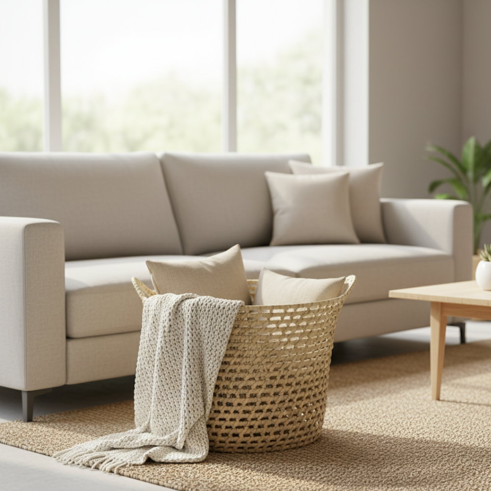 🌿 Cesto de palma y carandillo hecho a mano, ideal para organizar con estilo. ✨ Su textura natural y diseño artesanal lo convierten en un complemento decorativo único. 🏡 Perfecto para mantas, juguetes o plantas. 💛 Cada pieza es única y transmite calidez.