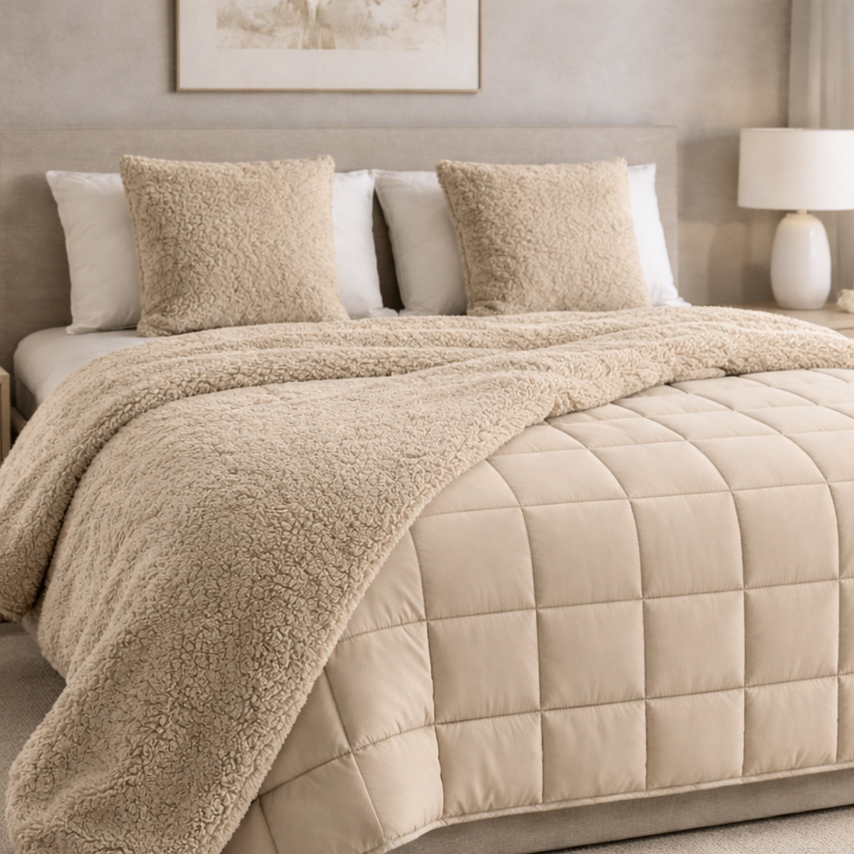 El reverso de corderito (shearling sintético) presenta una estructura de fibras de alta densidad que incrementa la retención térmica, aportando mayor abrigo y una sensación envolvente de confort.
