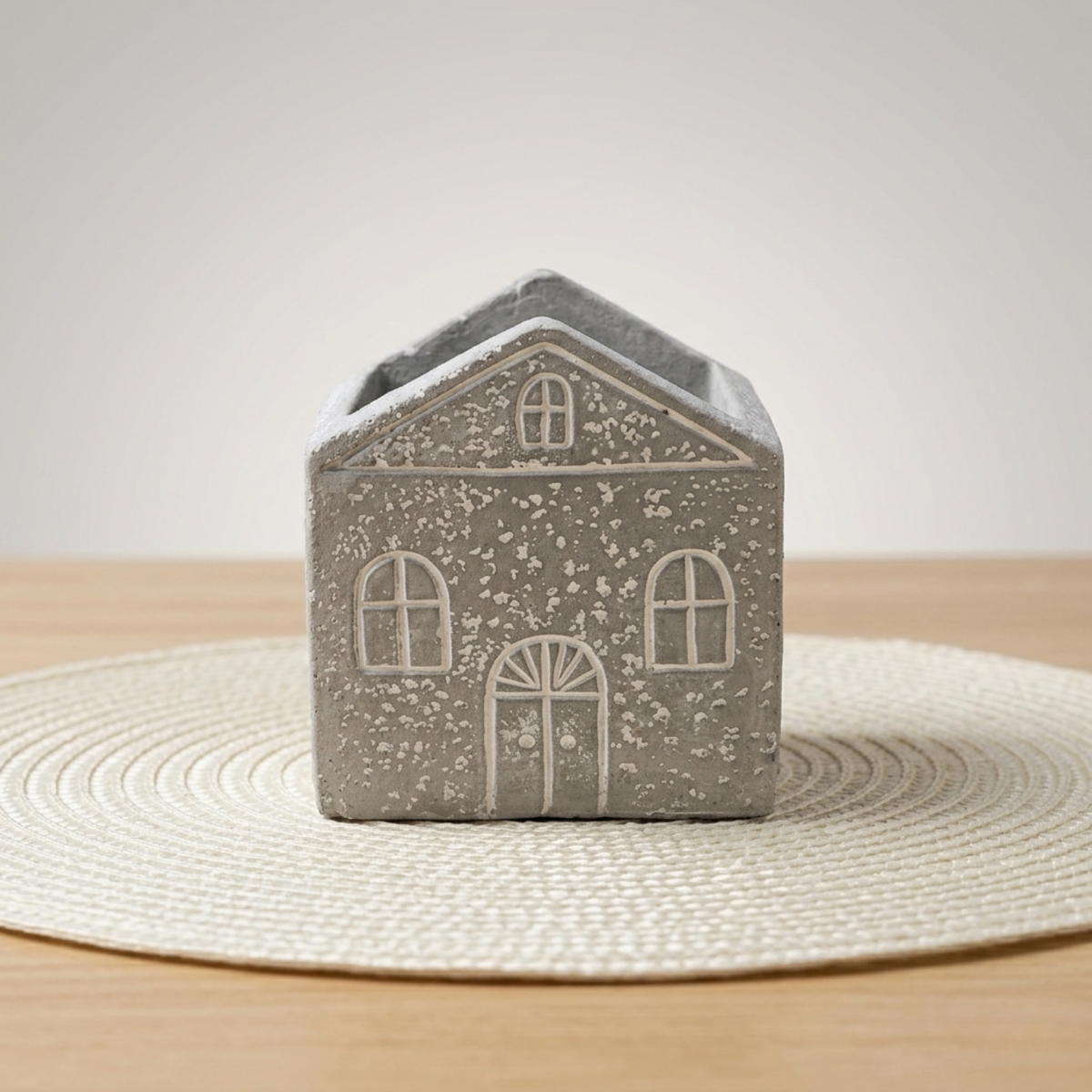Elaborada en cemento, conserva la textura y el tono característico del material en su estado más auténtico. Su formato mini la hace ideal para cactus, suculentas, plantas pequeñas o como elemento decorativo sin plantas.